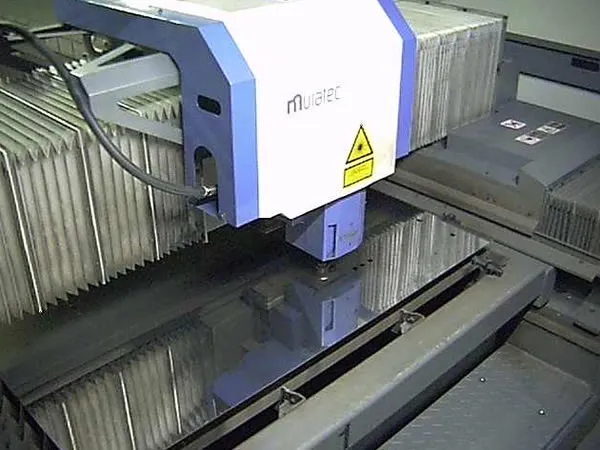世界最速の分速340Mのファイバーレーザー切断機。リニア駆動により穴加工ではミクロン単位の切断精度を実現。